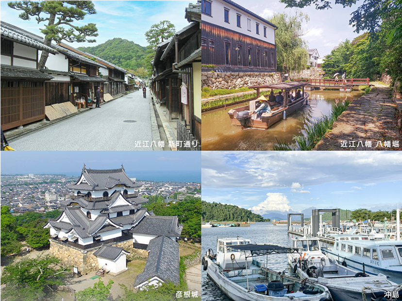 彦根城西の丸三重櫓、彦根城天秤櫓、玄宮園、楽々園、山の湯、足軽屋敷 川井邸(旧戸塚家住宅)、スミス記念堂、 伊藤邸、中野家具2号店、コジマギャラリー中央店(元呉服屋)
