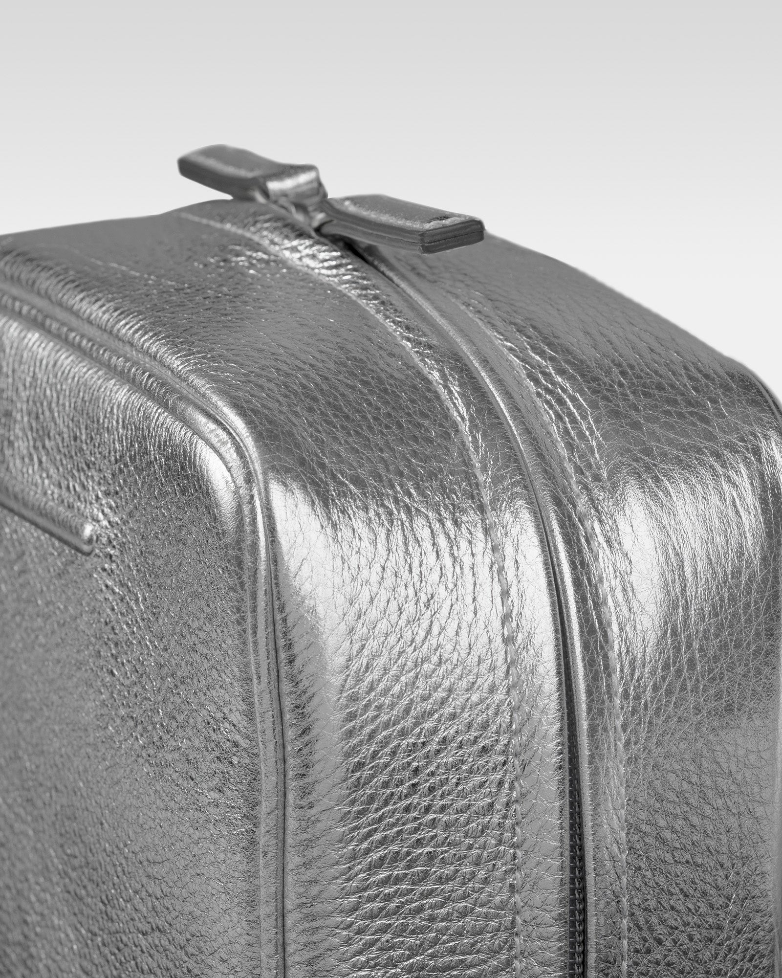 定番製品として販売していたシルバーレザーでしつらえたウォレットバッグ・ウォレットバッグワイドに加え、新たにiPhoneアクセサリー3種、カメラバッグ・カメラストラップ、フラットレザートートを同素材で展開。マットなシルバーのレザーがスタイリングのアクセントに。