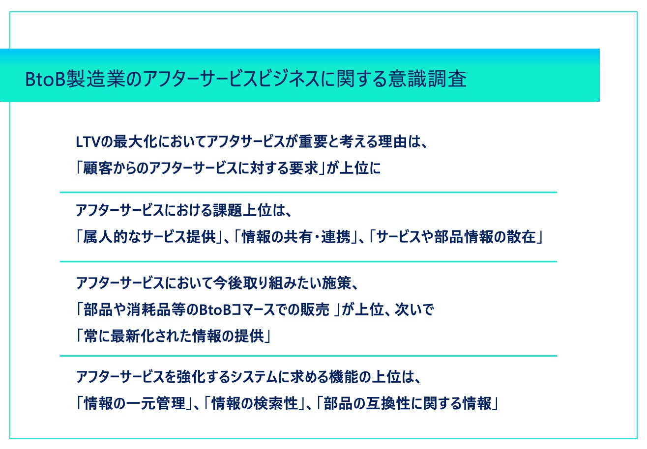 今回の調査は、BtoB製造業のアフターサービスビジネスにおける課題をヒアリングし、LTV最大化のために取り組むべき施策を明らかにするべく実施したものです。