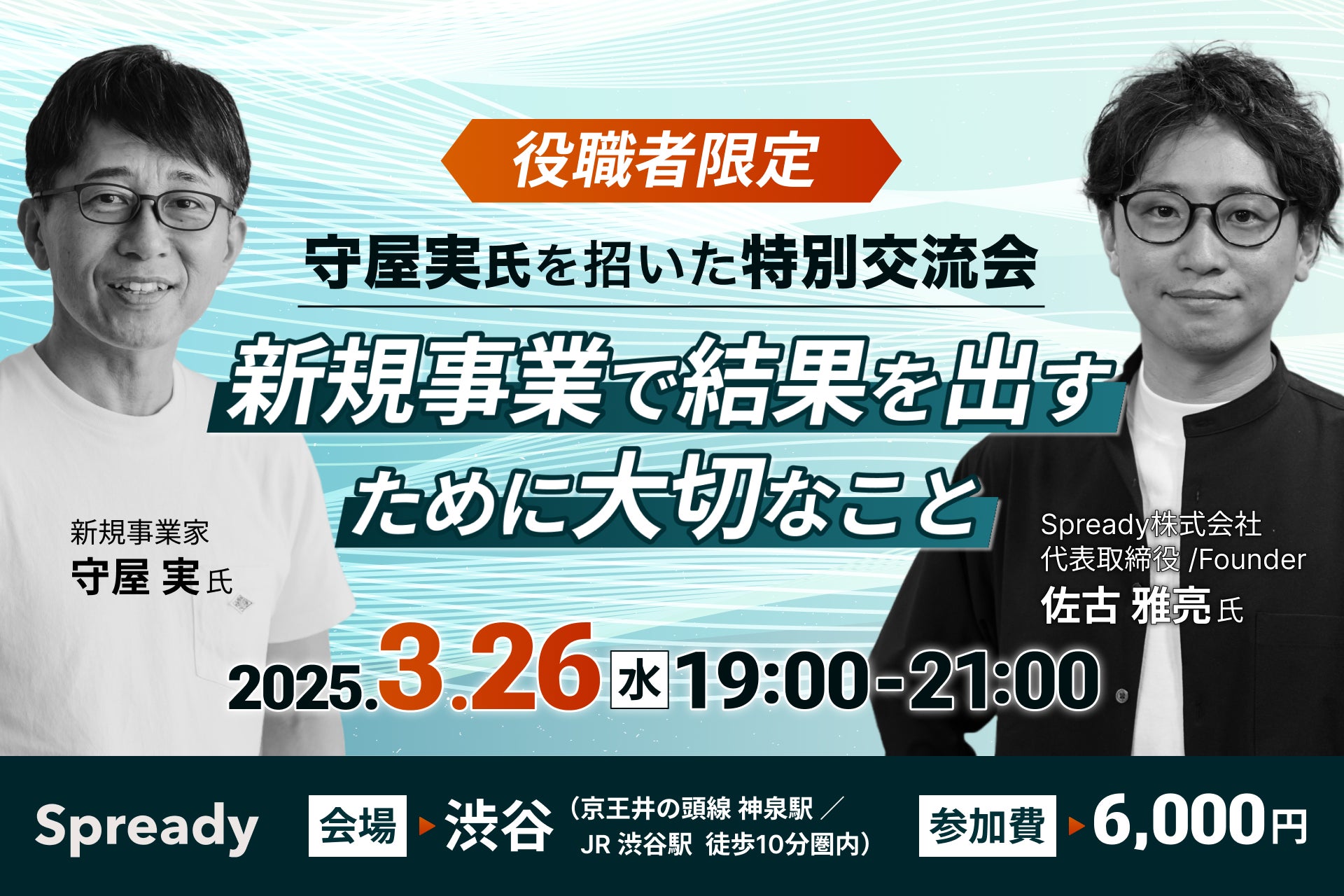Spready株式会社(本社:東京都渋谷区、代表取締役:佐古雅亮、以下「当社」)は、新規事業開発に携わるマネジメント層を対象に、3月26日(水)19時より渋谷にて『新規事業家・守屋実氏を招いた特別交流会』を開催いたします。(お申込みはこちら:https://client.spready.jp/seminar/20250326)