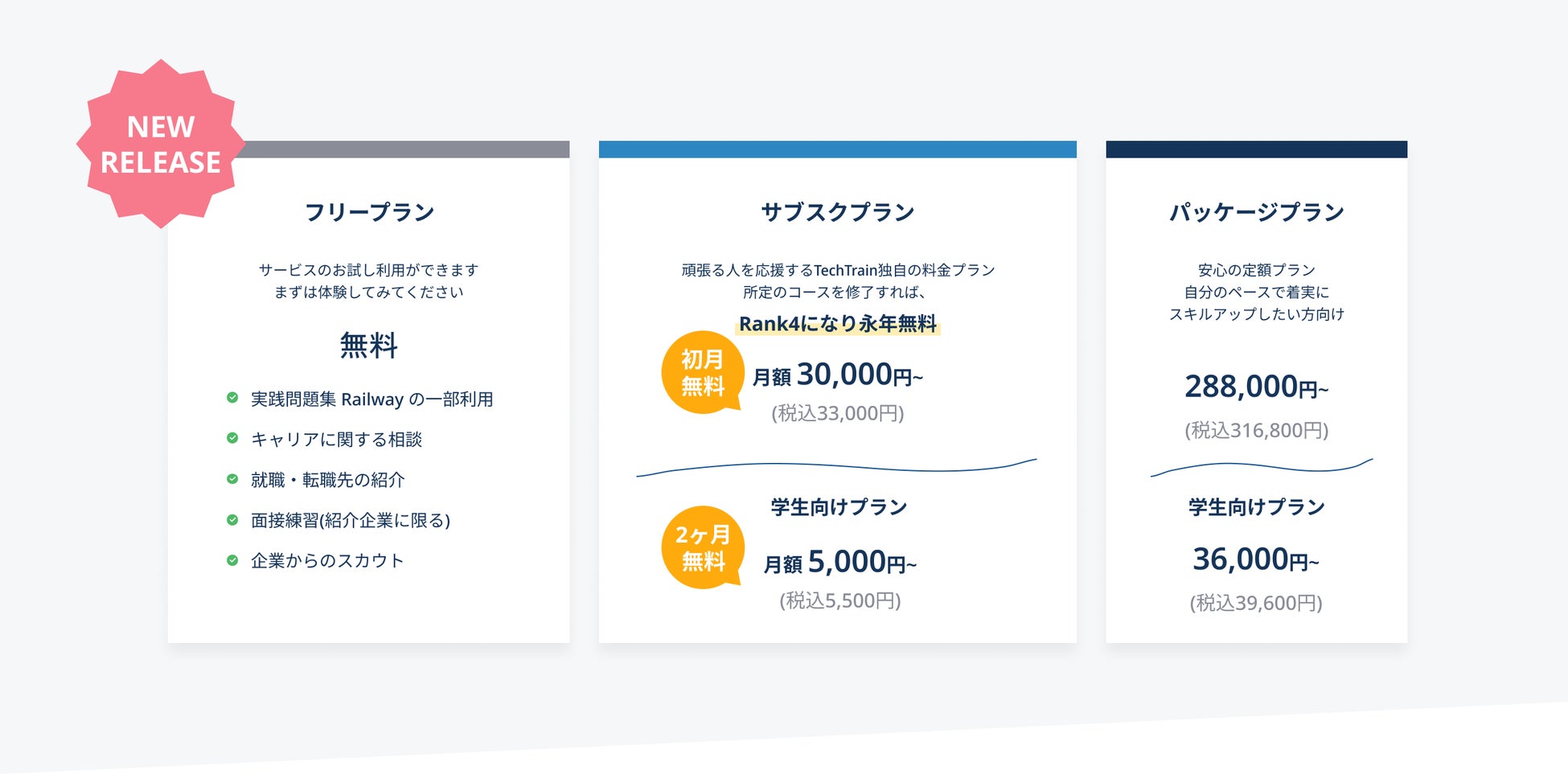 TechTrain はこれまで月額定額の「サブスクプラン」と、6・9・12ヶ月の長期利用を目的とした一括払いの「パッケージプラン」を提供してまいりました。