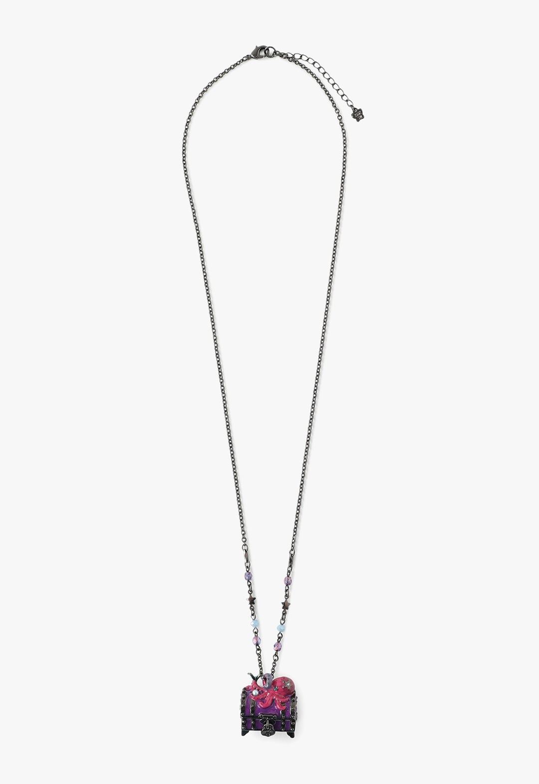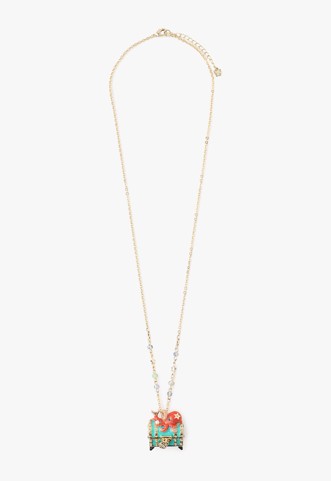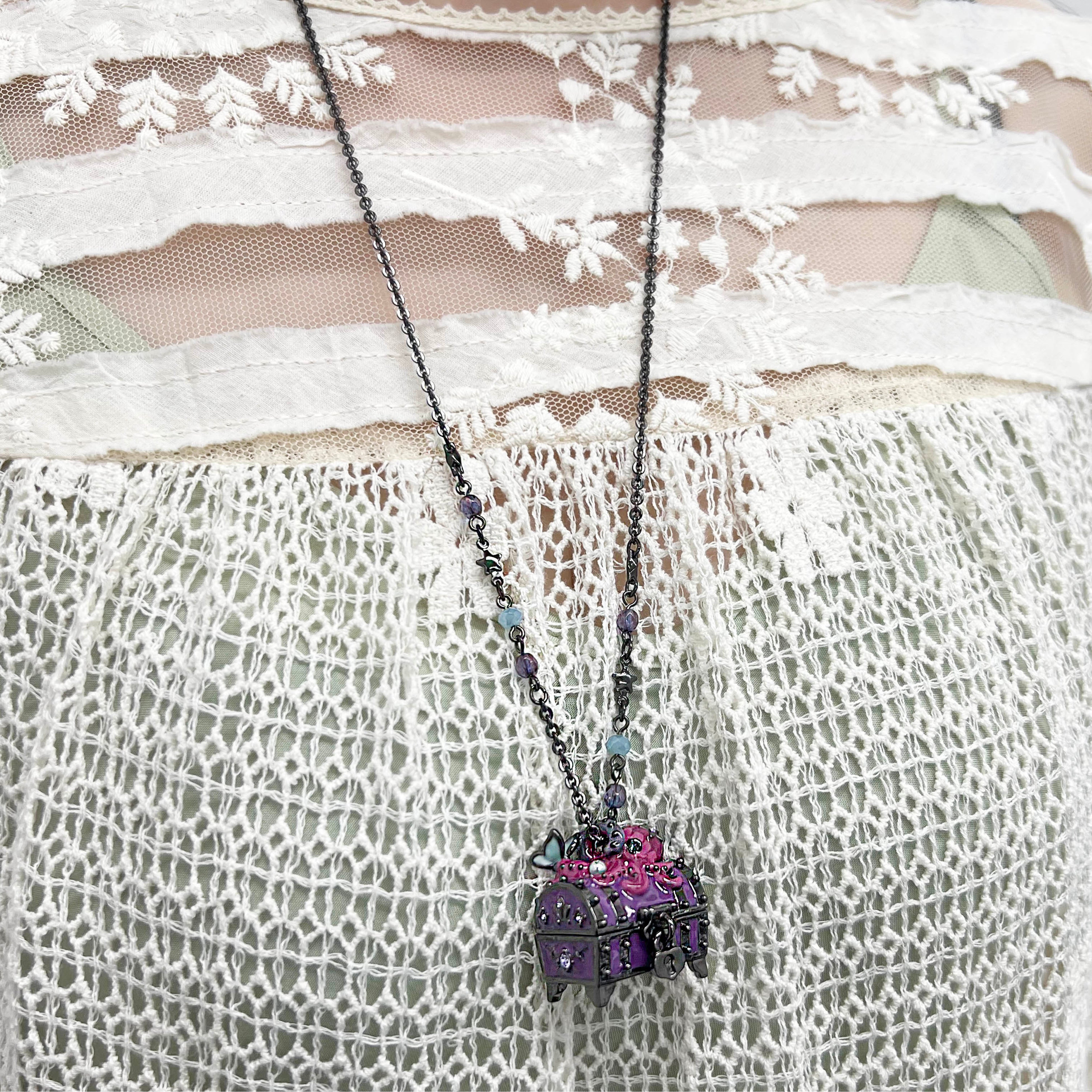 海底に眠る伝説の宝箱をモチーフにしたネックレスは、秘密のトレジャーを守っているキュートなタコと