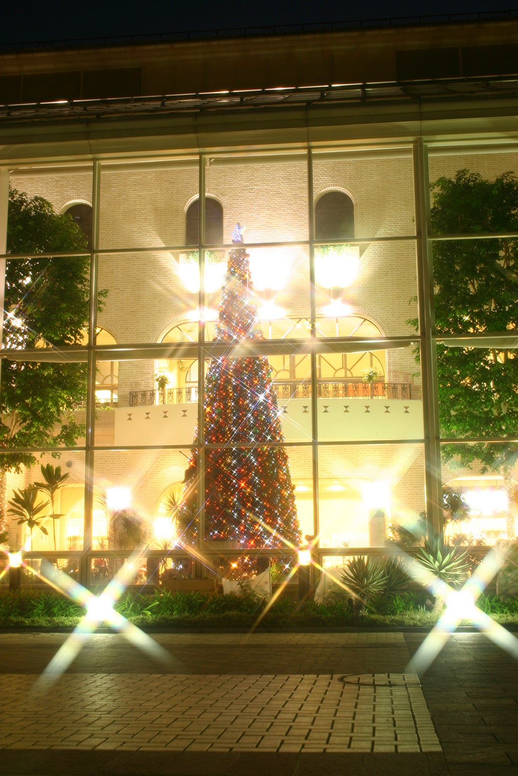 このツリーは2004年以来、毎年淡路ハイウェイオアシスのメイン施設であるオアシス館1Fのアトリウムに設置しているもので、おかげ様で今年19年目を迎えます。