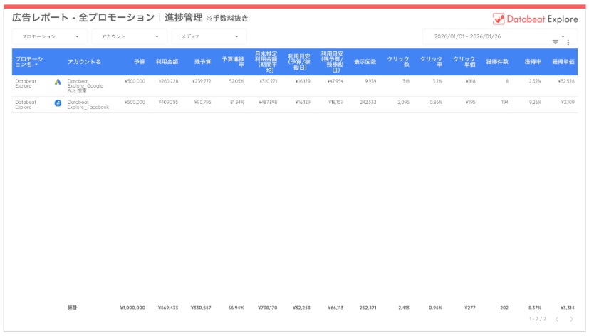 Databeatは、広告アカウント一つあたり500円(税別)からご利用いただけるため、レポートツールのコスト削減を検討中の方にもおすすめです。※1