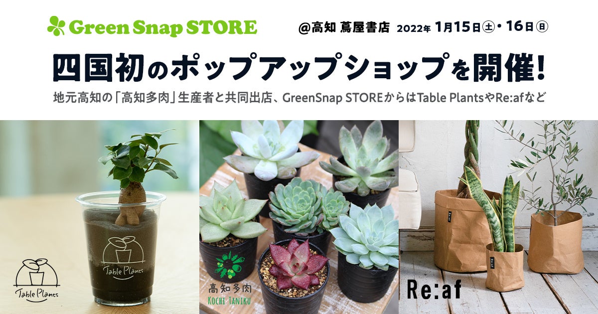 GreenSnap株式会社(東京都中央区、代表取締役:西田貴一)が運営する植物のオンラインショップ「GreenSnap STORE」は、2022年1月15日(土)、16日(日)の2日間、高知県高知市の「高知 蔦屋書店」において、地元高知の「高知多肉」生産者と共同で四国で初めてのポップアップショップを開催いたします。