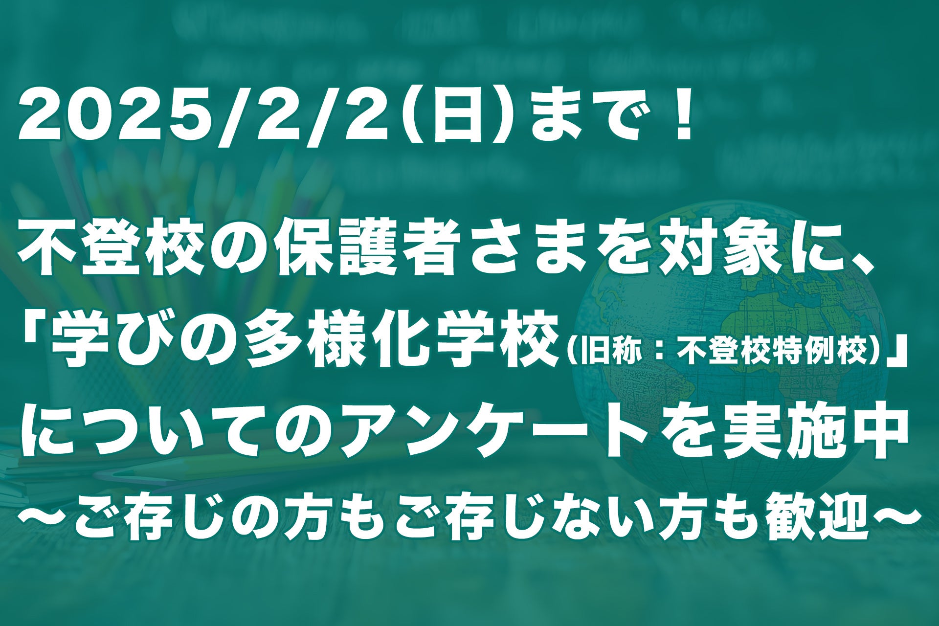 「学びの多様化学校(旧称:不登校特例校)」についての保護者アンケートを実施中〜2/2まで〜