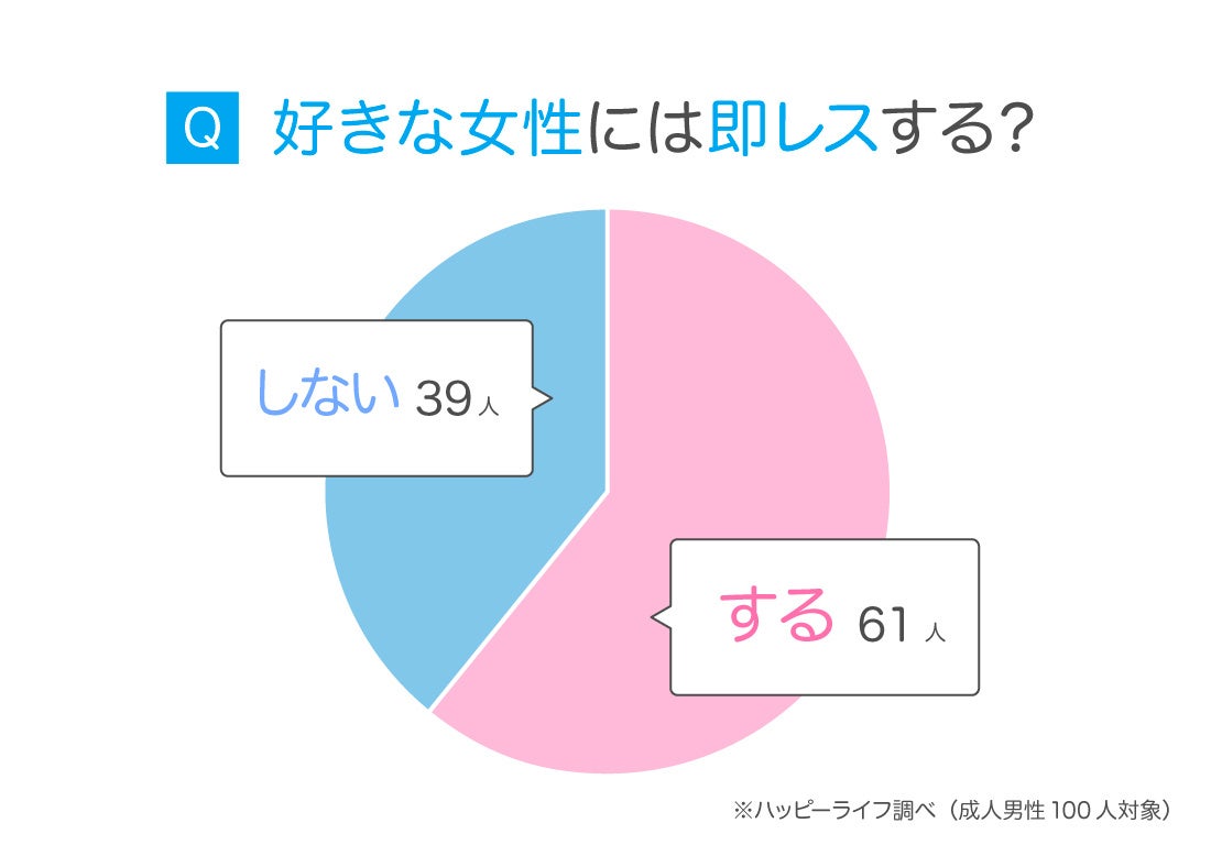 LINEの相手が好きな女性になると、一気に61%の割合で即レスすると回答されました。