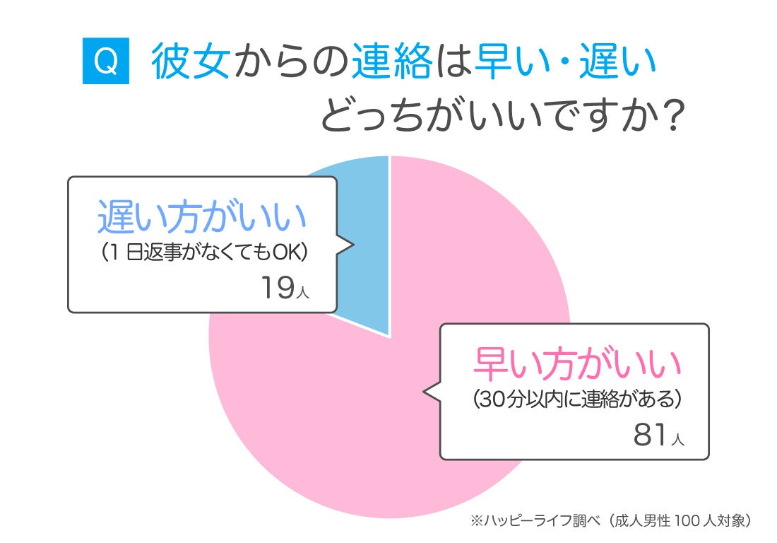 ただ、2割弱は1日返事がなくてもOKなようですので、必ずしも早く返事することが愛情表現になるとは言い切れないかもしれません。