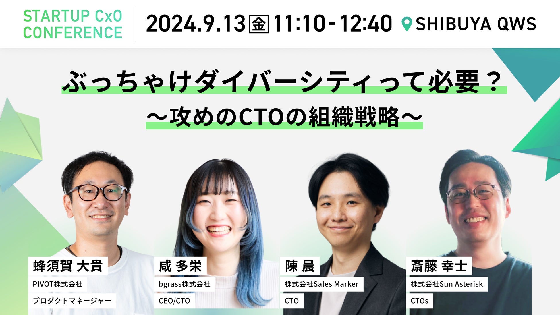 「Startup CxO Conference」はCTO、CFO、CMO、COO、CSO、CPO、CDO、CHRO等の取締役、CxOが集まるスタートアップ経営チームのためのカンファレンスです。