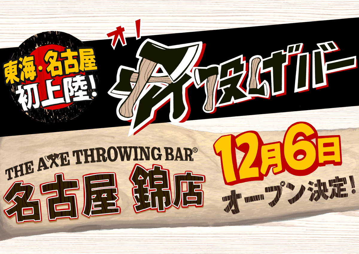 【東海・名古屋エリア初】斧投げバー”THE AXE THROWING BAR®︎ 名古屋 錦店”が2022年12月6日(火)にオープン決定!