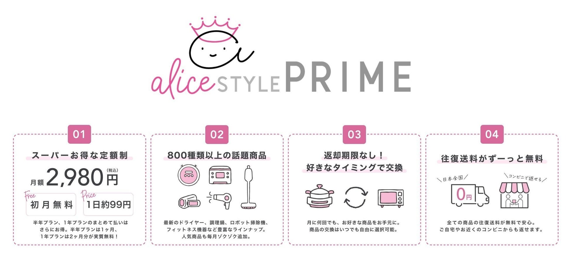 美容家電などオールジャンルの定額レンタルサービス「アリスプライム」ユーザー満足度調査にて80%以上が「満足」と好評価回答!