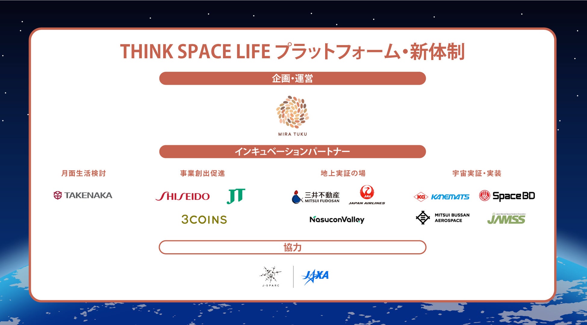 宇宙×暮らし・ヘルスケア分野のビジネス共創プラットフォーム「THINK SPACE LIFE」の民間主導体制への移行について
