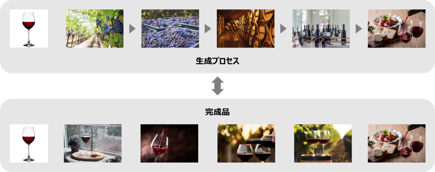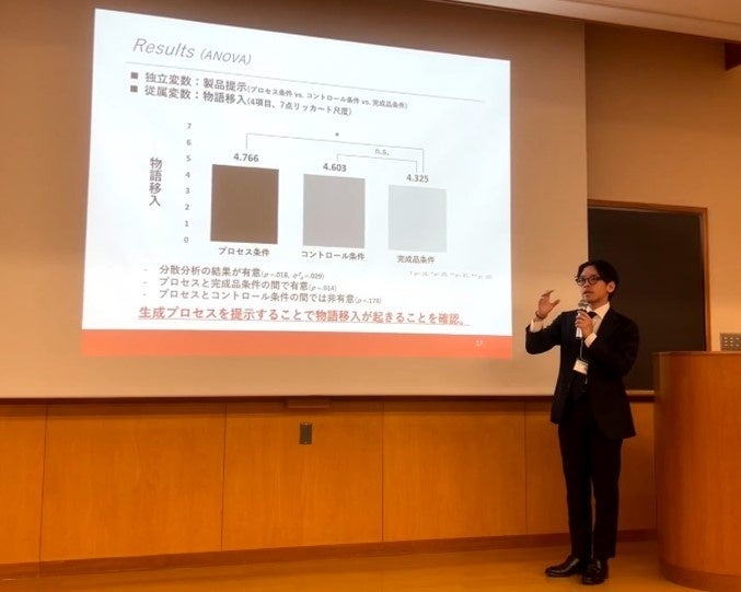 その結果、完成品イメージよりも、製品の生成プロセスを見せることの方が、消費者が「物語」として知覚するのに有効であることが分かりました。また、同じワインの生成プロセスの写真でも、それらはバラバラではなく、完成するまでのプロセスに沿って順序立てて提示することで、その有効性が発揮されることも併せて判明しました。