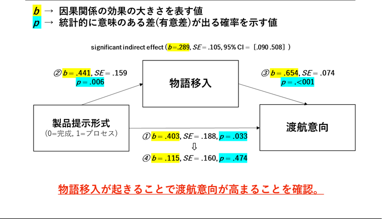 ・地域の製品を提示し、“物語移入”が起こると当該地域への渡航意欲が高まる。