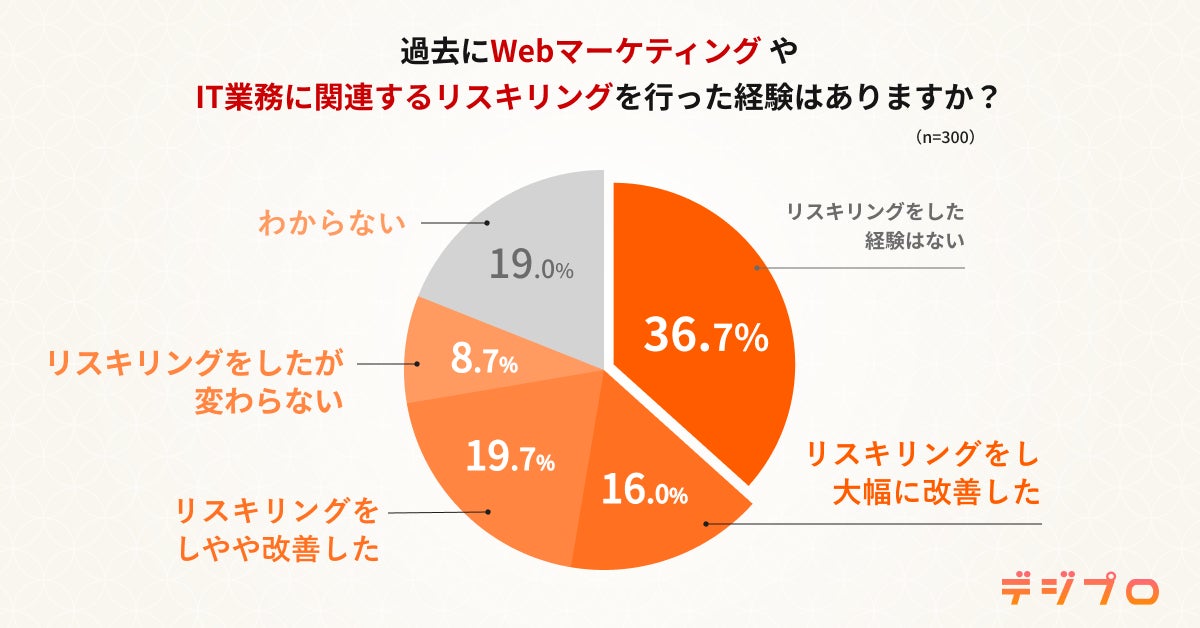 調査結果で最も多い回答となったのは、「リスキリングをした経験はない(36.7%)」。