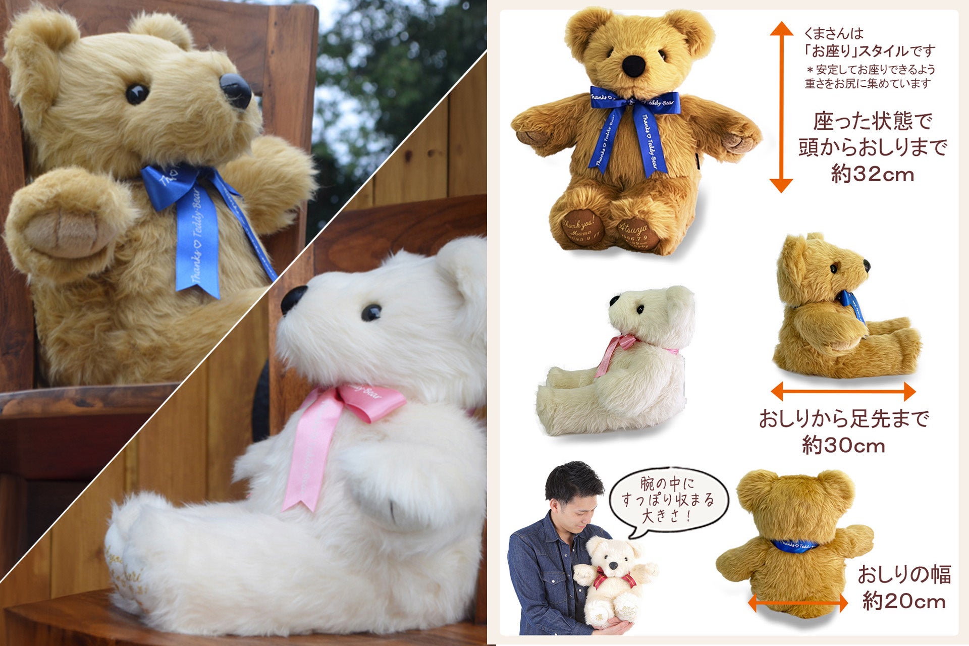 ふわふわな柔らかな毛並みと、テディベアらしいかわいいいお顔が人気の秘密。一生に一度、二十歳という記念日をお祝いするにふさわしいテディベアとして、「スタンダードベア」を選定しました。