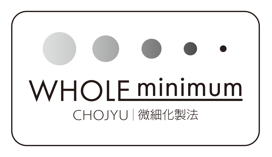 長寿乃里では、この微細化製法を用いた商品展開を「WHOLE minimum(ホール ミニマム)」プロジェクトとして推進します。今後、微細化技術を活用し、製品をまるごと微細化することに成功した製品には、順次この専用ロゴを記載していく予定です。