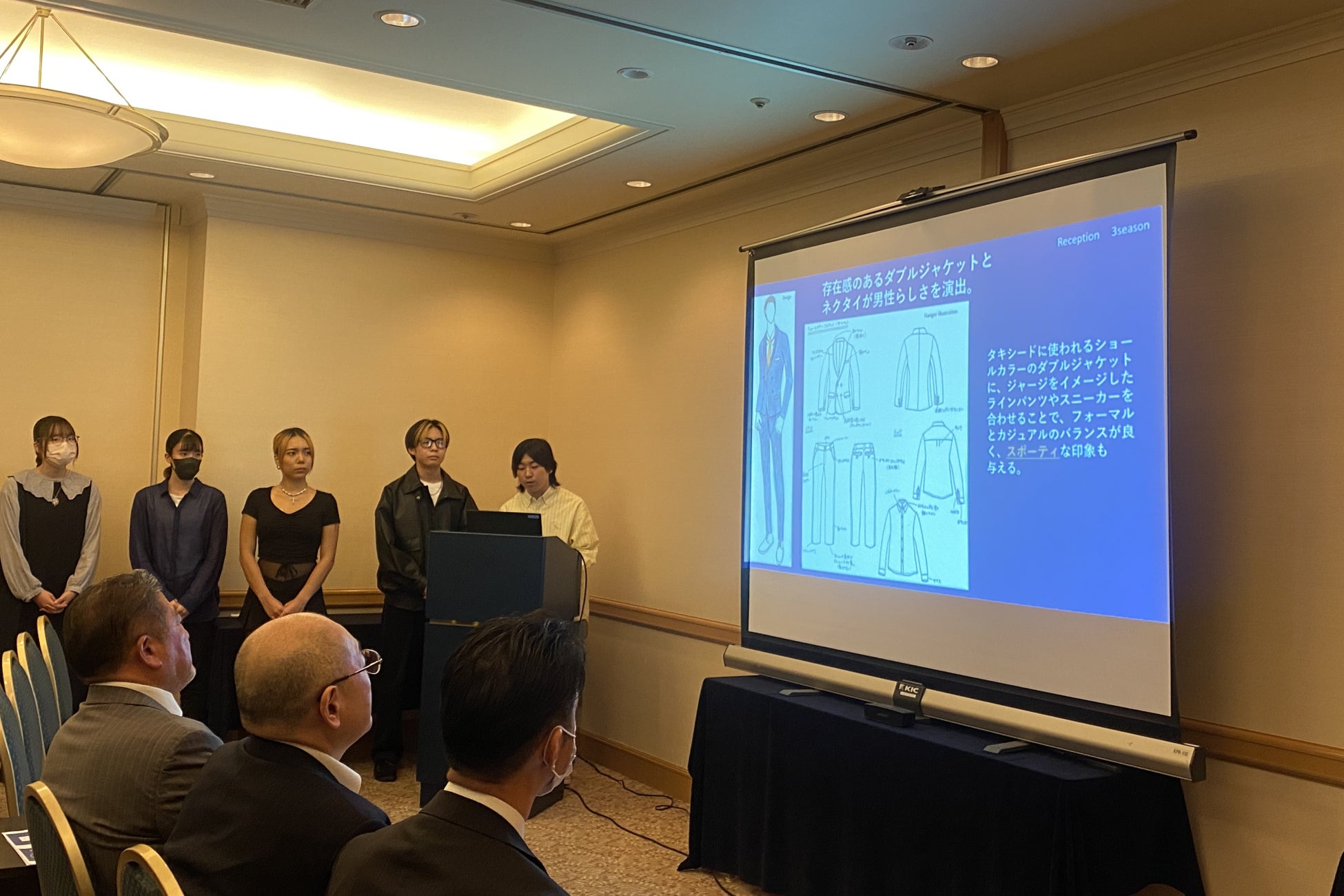 2023年3月に本プロジェクトが発足され、同校 ファッションライフデザイン学科の34名が参加しました。同ホテル総支配人の石原 哲也様から、ホテルのビジョンや館内デザインのコンセプト、そして新たなユニフォームへの要望などをレクチャーいただき、「多様性」「正装服(フォーマル)」「機能性」の3点をデザインコンセプトに掲げ、デザインを開始しました。