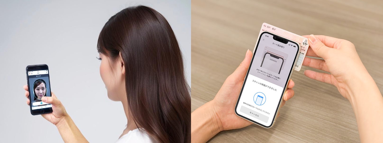 ネット上での契約やアカウント登録、口座開設時などに必要な身元確認をオンライン完結で行うサービスです。運転免許証やマイナンバーカードなどの本人確認書類の撮影、もしくはICチップの読み取りを行い、自撮りの顔写真との照合を行う方式や、公的個人認証(JPKI / スマホJPKI)を活用した方式を提供しています。学割などの年齢確認にも対応可能です。独自のAI技術、生体認証技術、OCR技術などにより、撮影開始から完了までの離脱率の低さを実現し、ELEMENTSグループ合計で累計本人確認件数は1.5億件、累計契約数は600社を超えています。