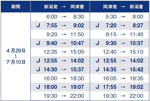 ■4/29からの新潟両津航路増便ダイヤ