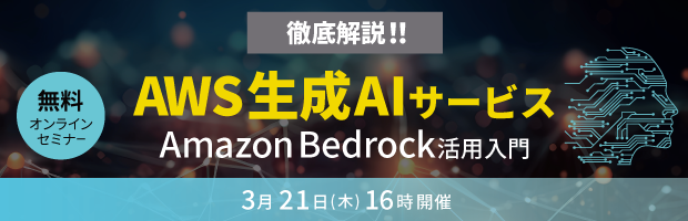 また生成AIの基本的な仕組みをビジネスでの活用例とともに紹介するセミナー「徹底解説!!AWS生成AIサービスAmazon Bedrock活用入門」を2024年3月21日に開催します。