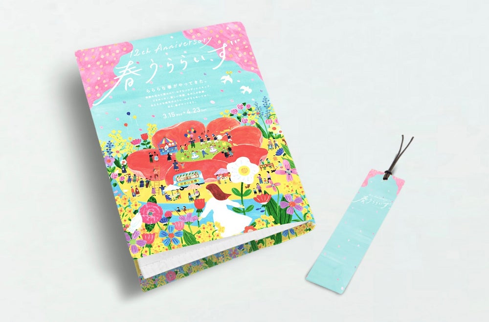 「春うららいず」では、あたたかな陽気に誘われて心がきらめく「春」らしいワクワク感をお客さまに届けるさまざまな企画を展開します。イラストレーターの布川愛子さん(プロフィールはP.3参照)が手掛けたキービジュアルでは、春らしい色使いでそんなワクワク感を表現しています。