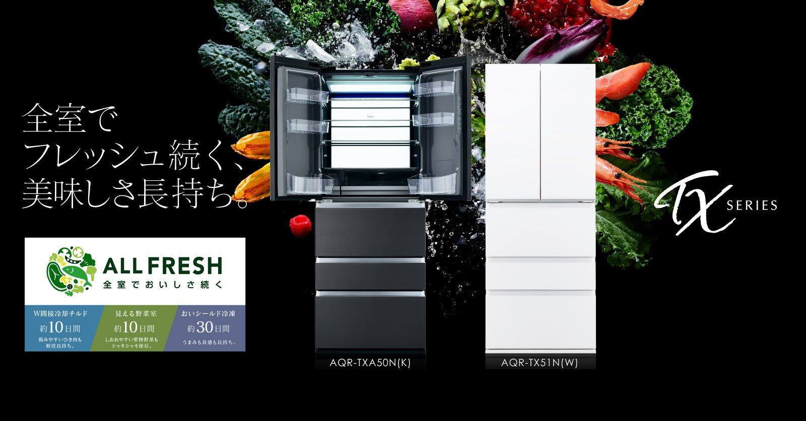 最新の鮮度保持技術「ALL FRESH」で食材のおいしさ長持ち AQUA 冷凍冷蔵庫「TXシリーズ」4機種新発売
