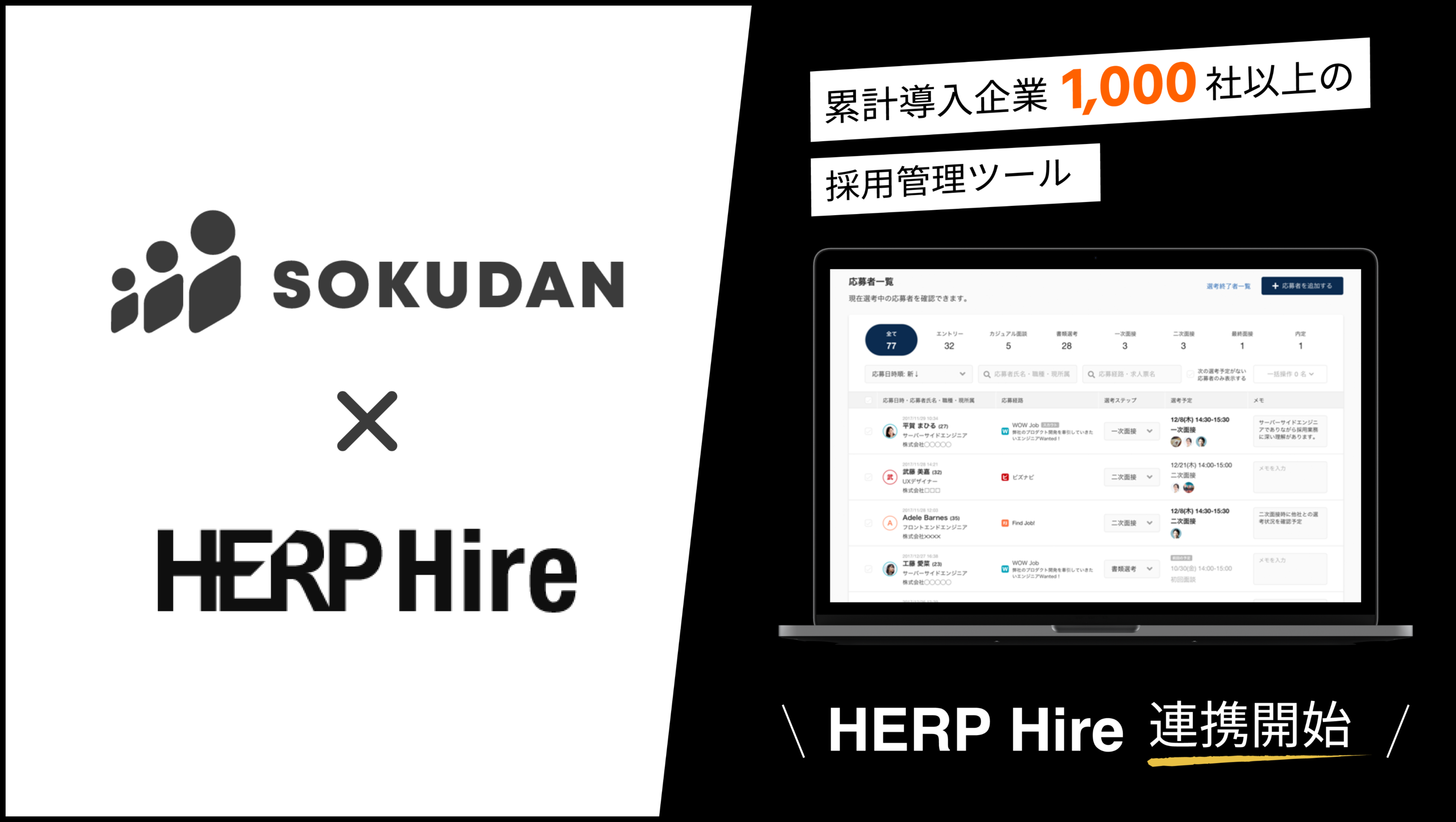 最短1日の複業マッチング「SOKUDAN」が採用管理システム「HERP Hire」との連携開始!
