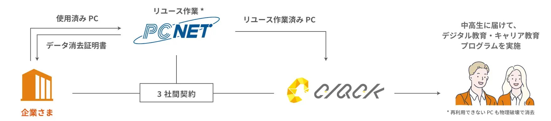 譲り受けたリユースPCは、CLACKが運営する完全無料のデジタル教育・キャリア教育プログラムとともに、経済的等の困難を抱える中高生に届けてまいります。