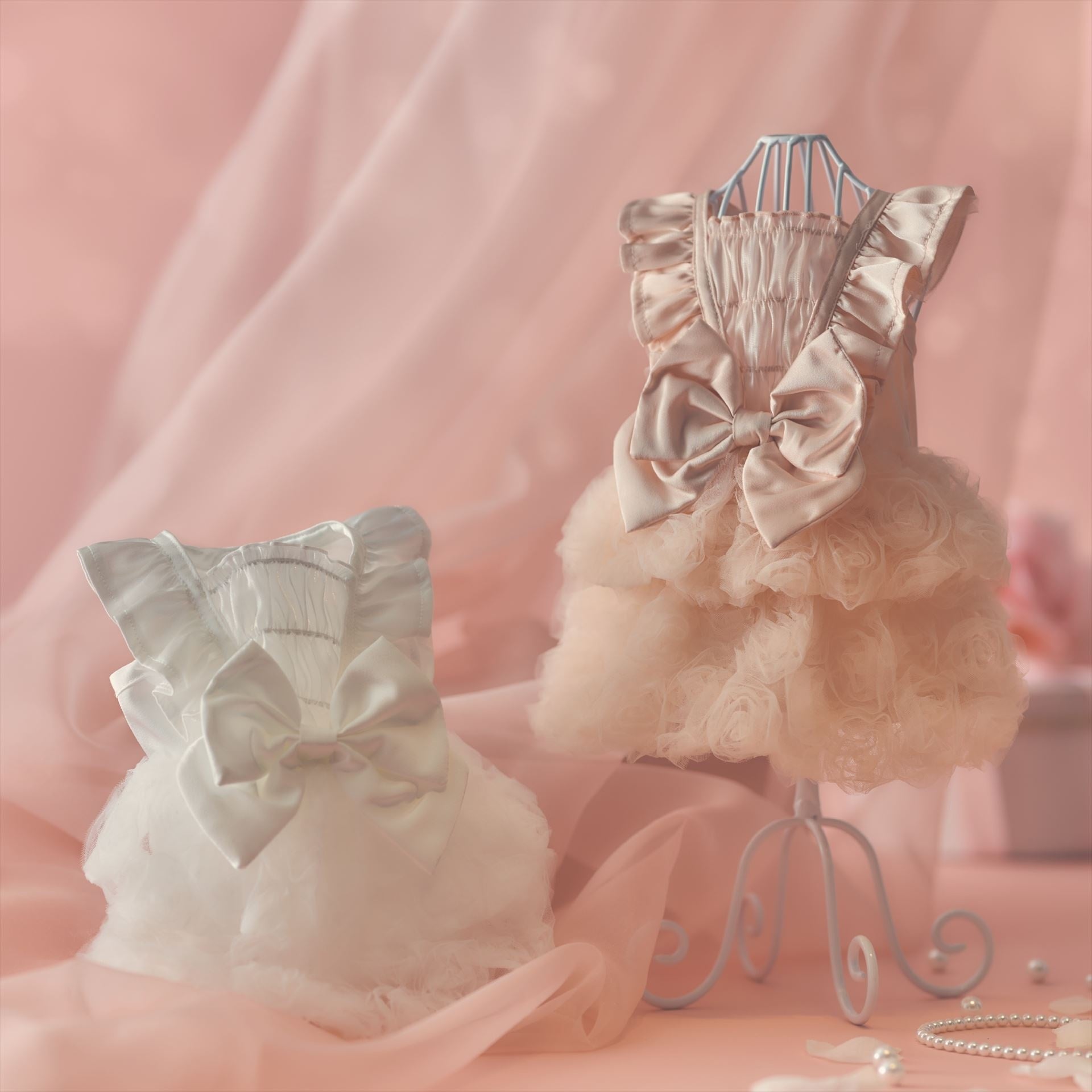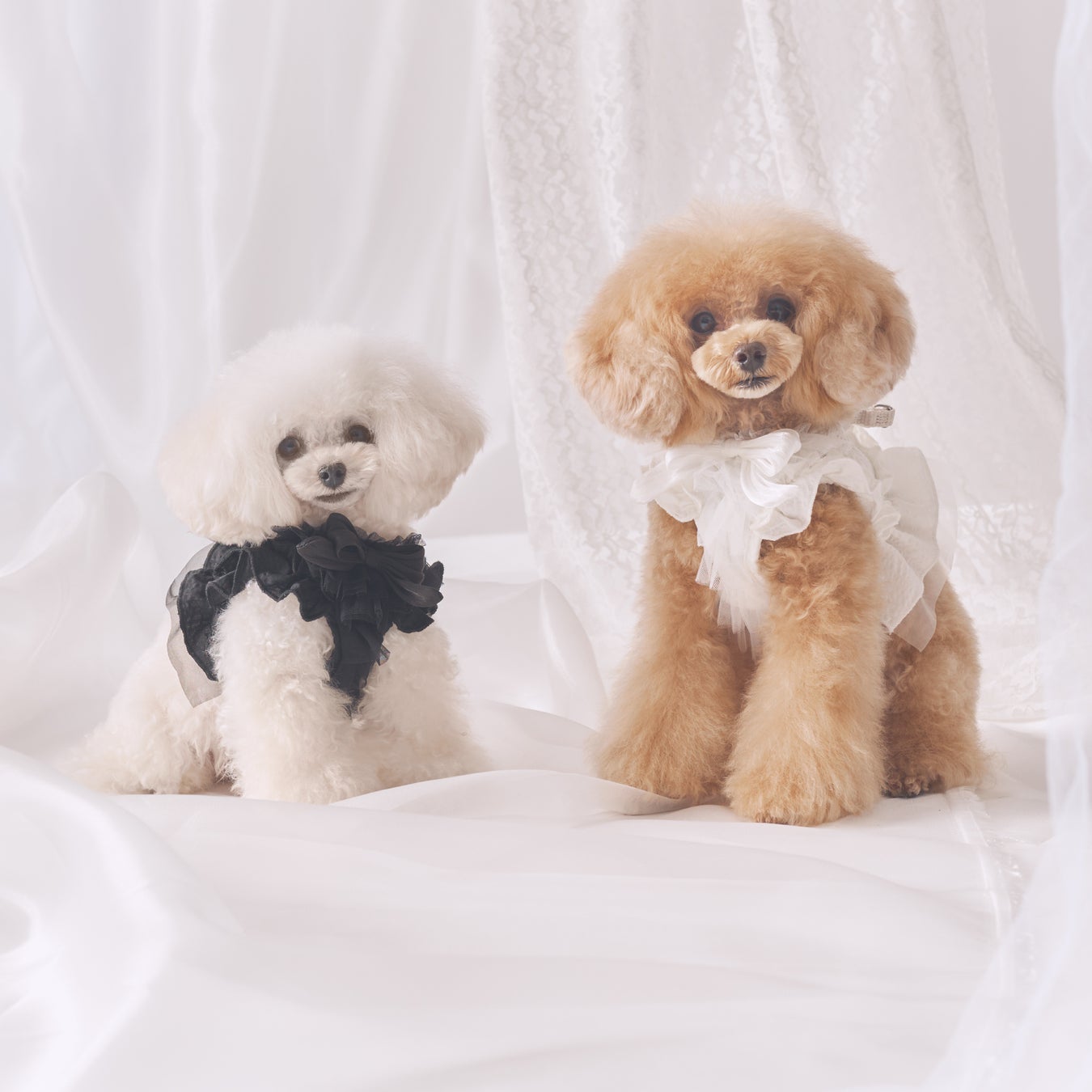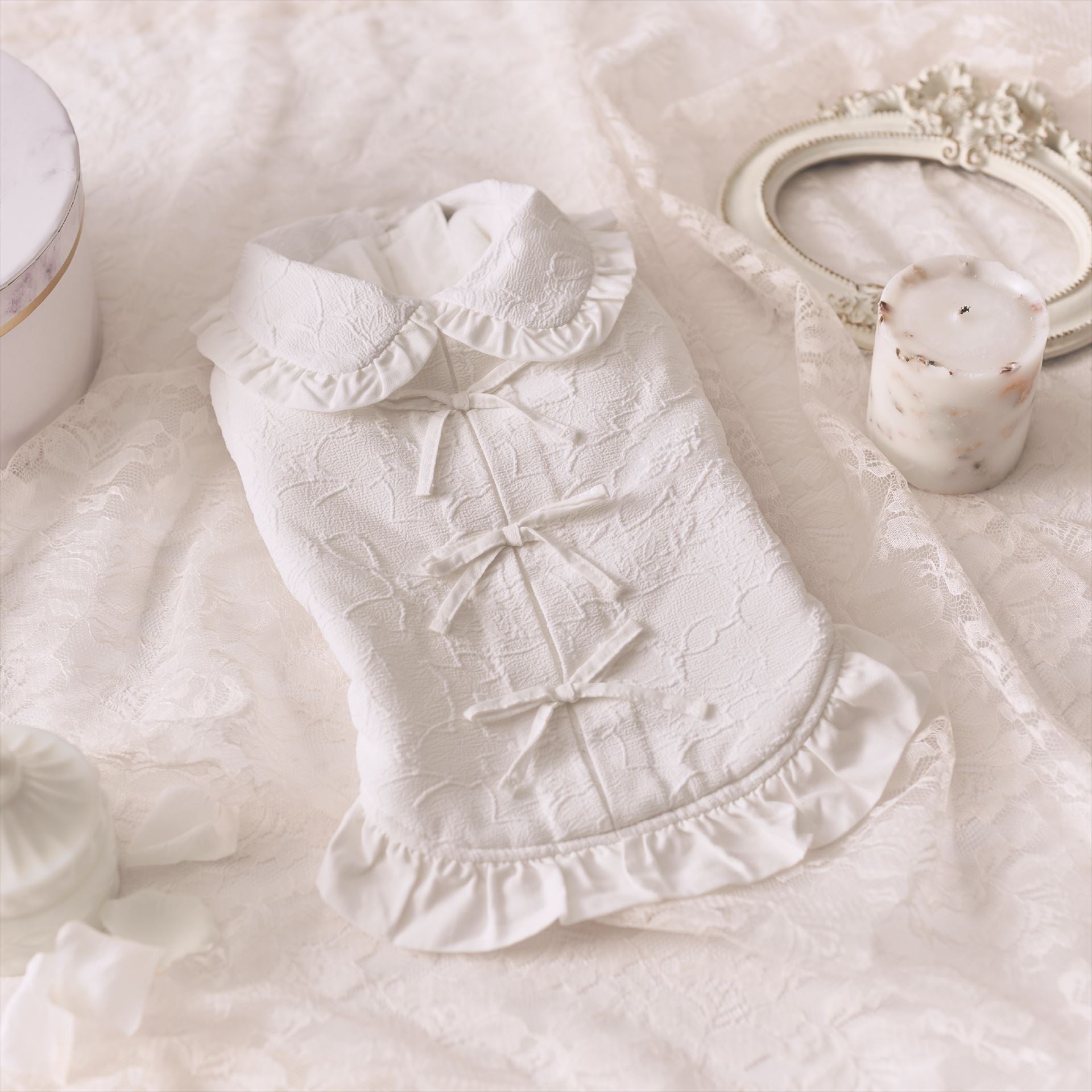商品は、厳選された素材と洗練されたデザインにこだわり、愛らしいリボンや光沢感あふれるサテン、繊細なチュールやオーガンジーをふんだんに使用しています。フェミニンで上品なコート、ワンピース、ベストなどのアイテムは、トレンドを取り入れた遊び心のあるシルエットと上質な素材の組み合わせが、大切な我が子を華やかに彩り、愛らしい女の子の魅力を引き出した特別な一着が飼い主との絆を深めます。