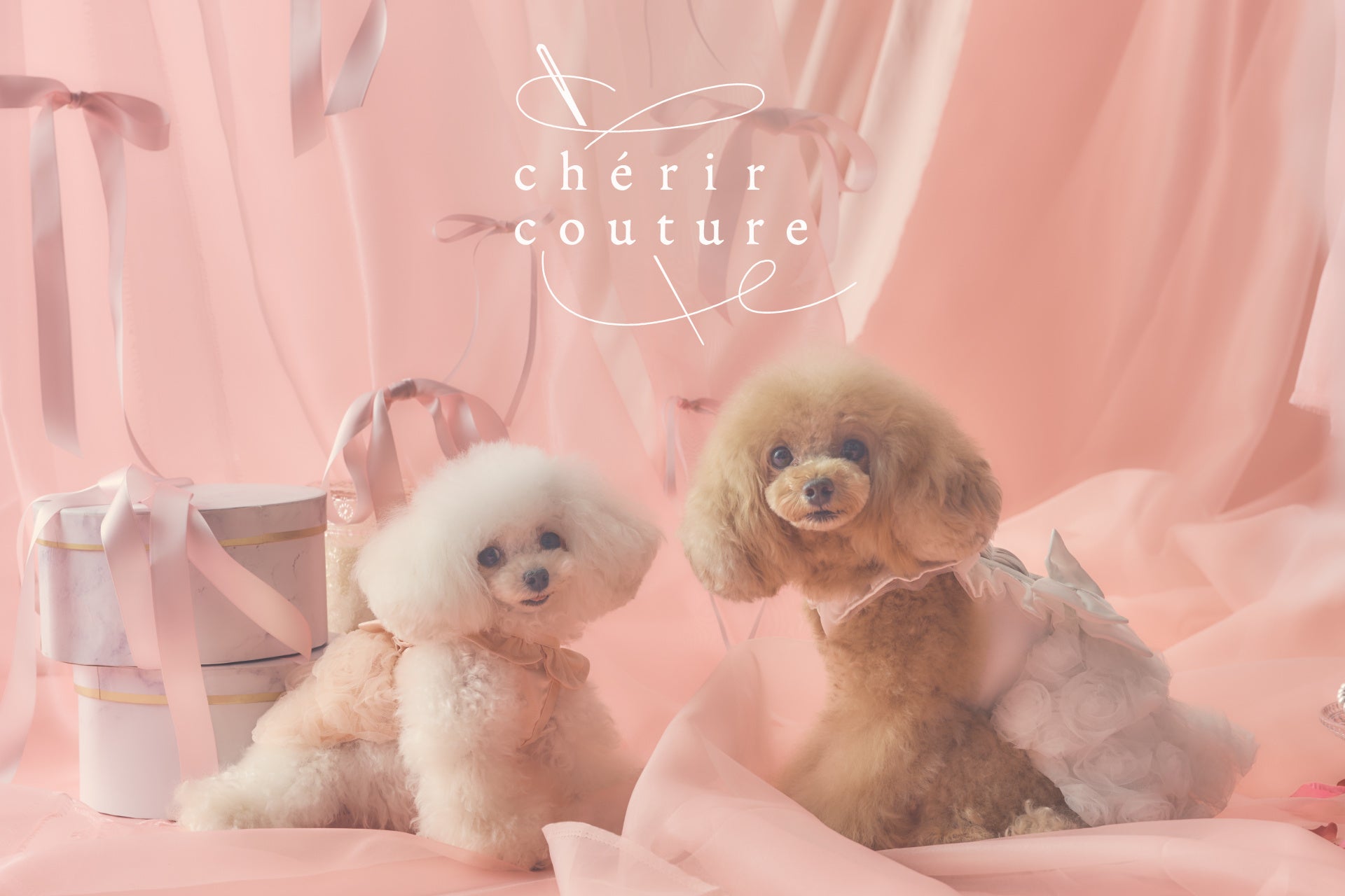 『chérircouture』は、「愛しい大切な子に特別な一着を」というテーマのもと、フェミニン・エレガント・ロマンティックをキーワードに、ペットと飼い主の心が豊かになるような高品質でデザイン性の高いペットウェア・ペット用品を提案します。ブランド名は、フランス語の「cherir(深く愛する、大切にする)」と「couture(仕立て)」を組み合わせた造語で、愛しい家族の一員であるペットへ、まるで自分自身が着る洋服を選ぶように心を込めて最高のものを提供したいという想いを込めています。