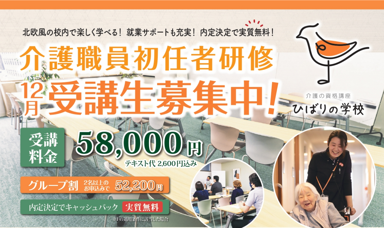 12月受講生募集中。資格取得後に弊社介護施設で就労できるサポート制度あり!