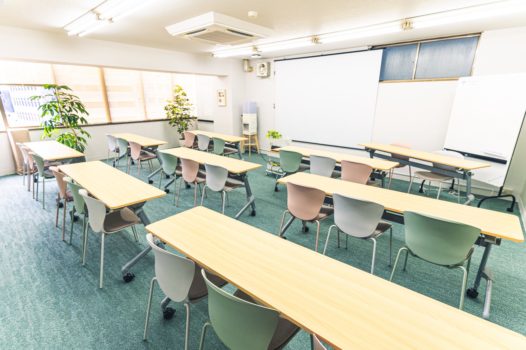 free Wi-Fi完備、フリードリンクなどもご用意し、生徒のみなさまが受講期間中に、ストレスフリーでポジティブに過ごせるような環境をご用意しました。