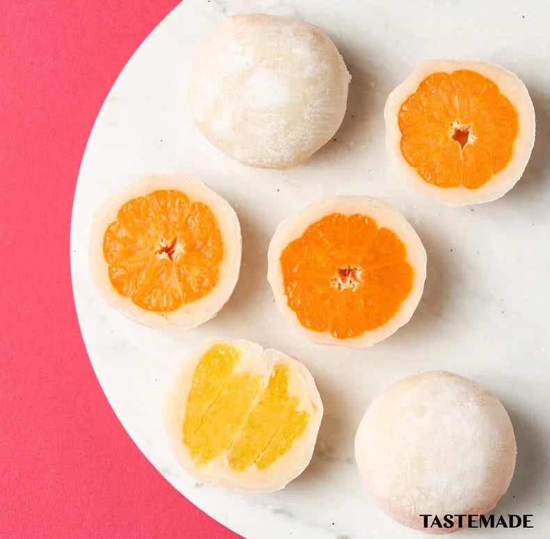 愛媛県で最もおいしい蜜柑の生産地から仕入れている小ぶりなみかんは、濃厚な味がたっぷりと詰まっています。一口かじると甘い果汁が口の中に広がり、もちもちな生地となめらかな白あんがとろける、幸せを感じられる大福です。