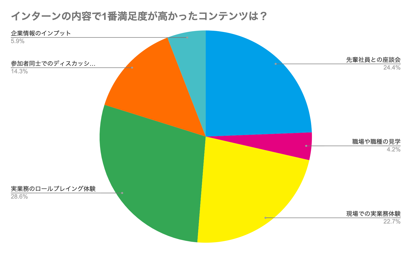 中でも、実業務を体験するコンテンツなどは、就活生からの満足度も高く、実際に働くイメージがつきやすいことが就活生からの評価の要因ではないかといえます。一定期間の中で、就活生と企業同士がそれぞれを知る機会にもなるインターンシップ。現場と一体となったプログラム内容にすることで、働くにあたってのミスマッチを減らすこともできるかもしれません。