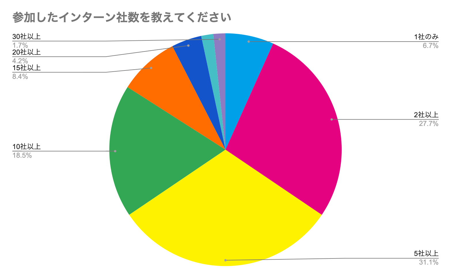 回答者の30%以上が10社以上のインターンを経験。内定前のインターンは主流に。