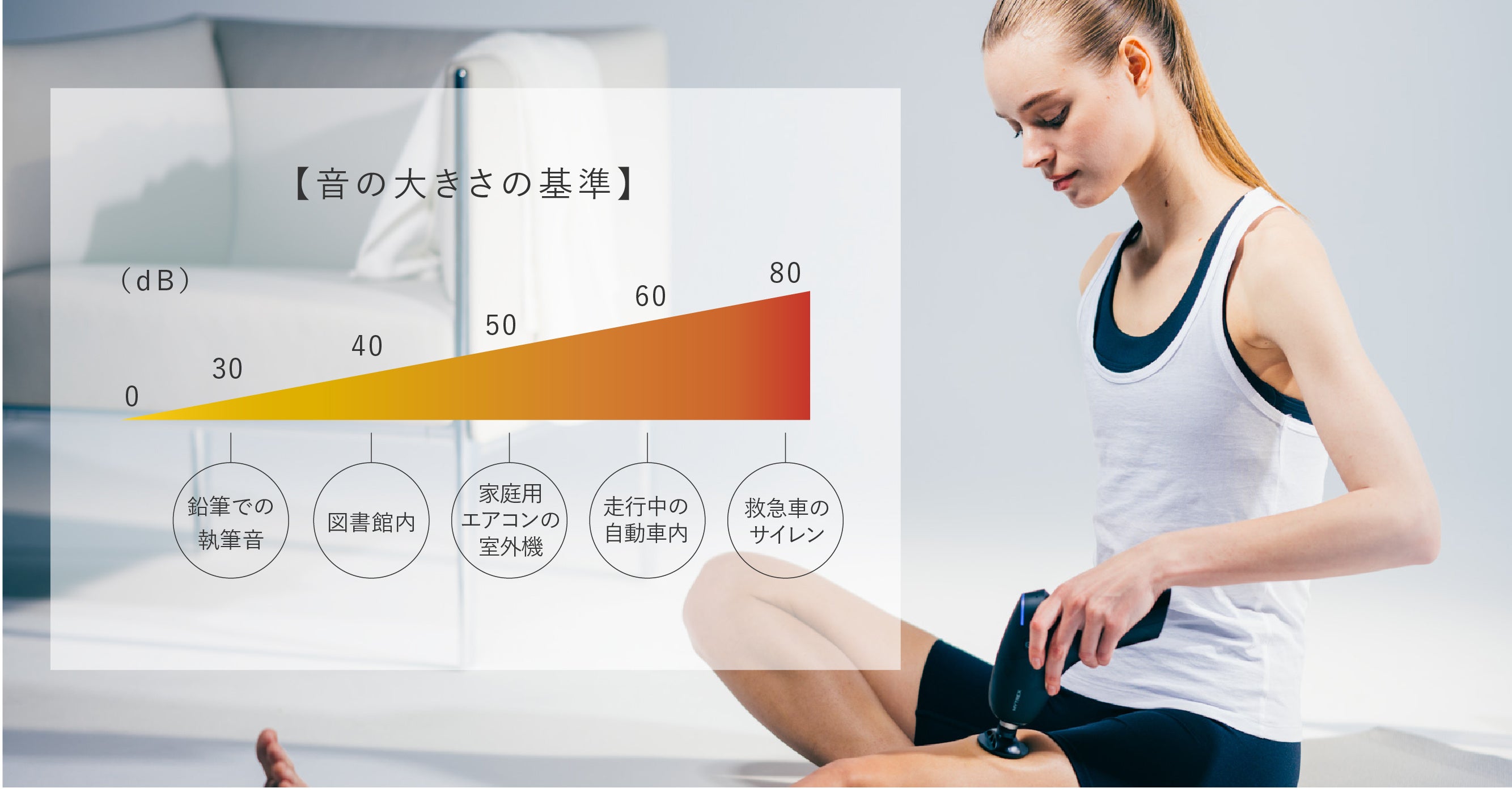 パワフルな使い心地からは想像ができないほどの超静音設計で、ケアの間も邪魔をしない静かさを実現。トレーニングの前も、大切な試合の前も。その瞬間のためのフォーカスを妨げない仕様です。