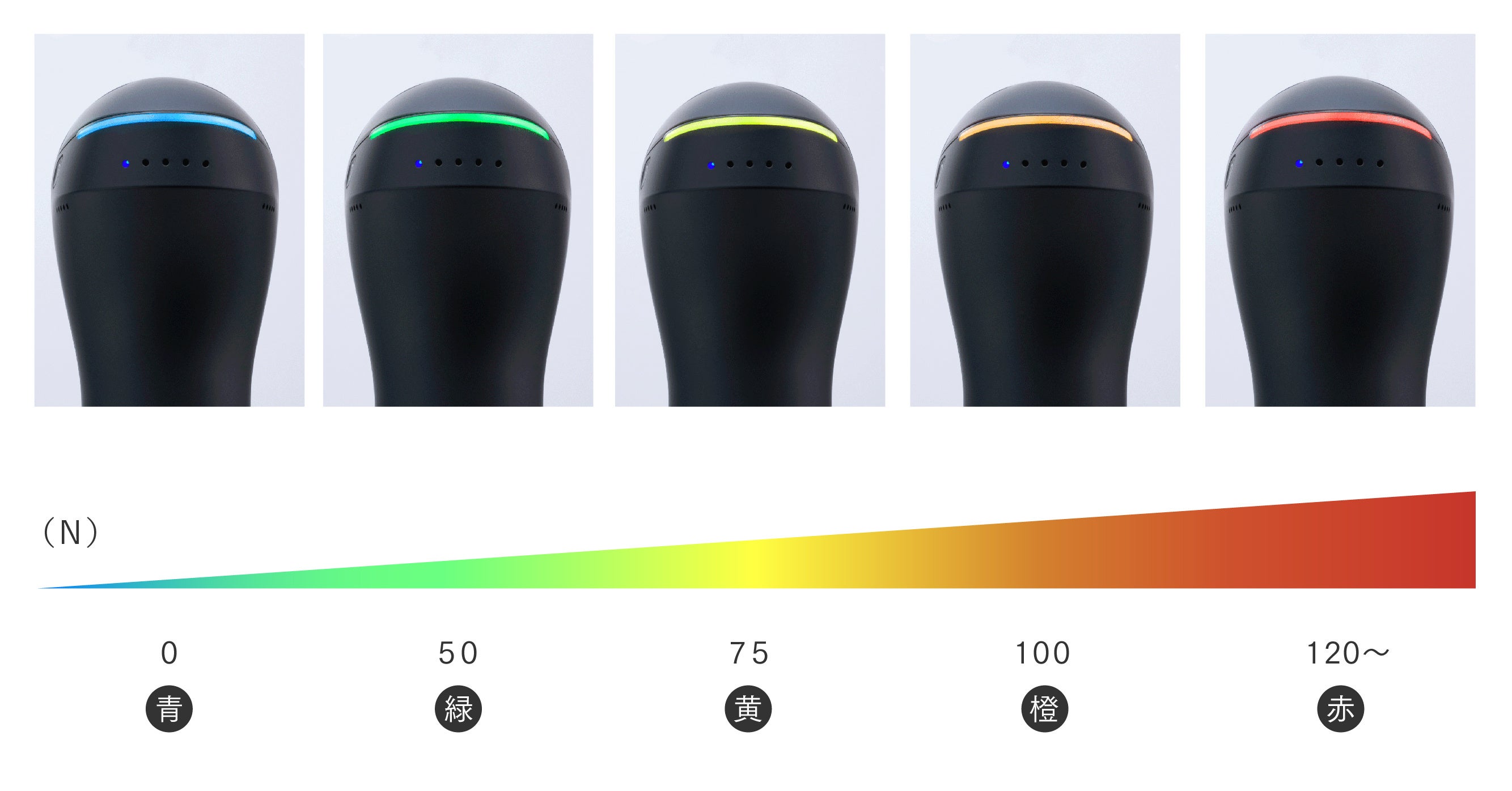 5段階圧力表示と5段階の回転数で段階刺激ケアが可能に。圧力レベルを感知し、5段階のLEDライトで確認できる圧力センサーを搭載。より正確で、より安全なケアにつなげます。部位やコンデションによって必要な刺激はさまざまなため、同じ回転数でも圧力をうまくコントロールすることによって大きな筋肉から繊細な筋肉まで適切に施術ができます。欲しい刺激を思いのままに操れるアスリートモデルならではのプロ仕様です。