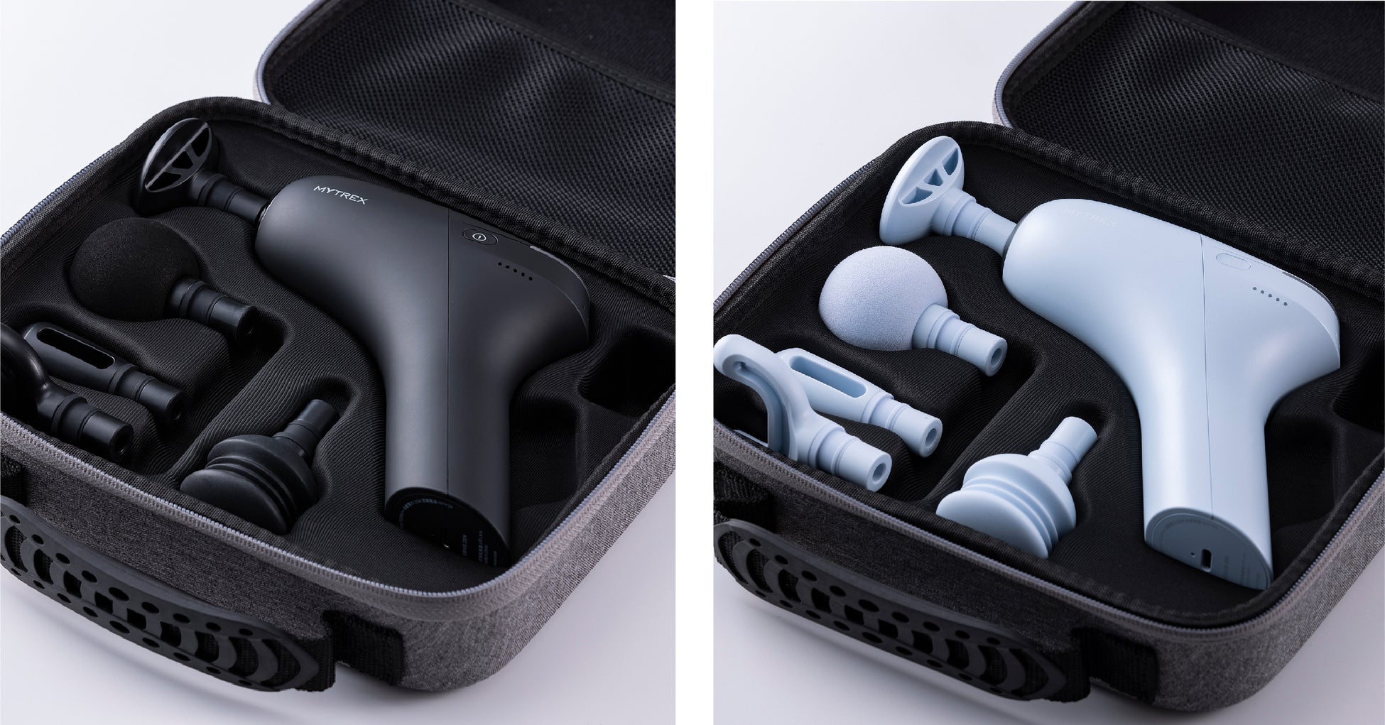 ハンディガンのパイオニア的存在として、数多くの人気商品を生み出してきたMYTREXの研究の成果を注ぎ込んだ本モデル。ハンディガンでは一般的な垂直刺激に加え、本体に取り付け可能な専用ベルト「MYTREX RELEASE BELT(マイトレックス リリースベルト)」*を使用した「水平振動刺激」を実現。浅層の筋肉を多方向に解放**することで、より効果的なボディケアを叶え、パワフルさや静音性などシリーズ屈指の性能を誇るコンディショニングギアとして新たに誕生しました。