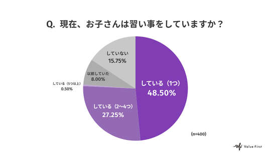 デジタルマーケティングの株式会社バリューファースト(本社:神奈川県横浜市、代表取締役:佐野 聡士、以下バリューファースト)が運営する「みんなの声研究Lab」では高校生以下の子どもがいる保護者400名を対象に「子どもの習い事」に関するアンケートを実施しました。