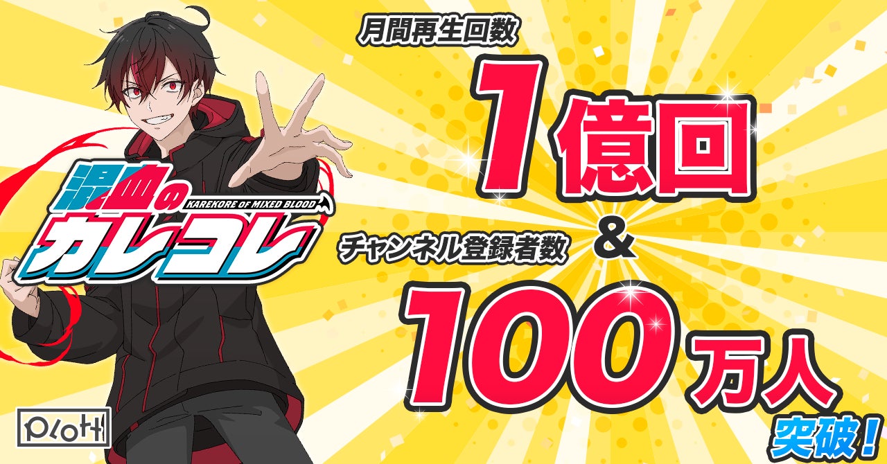 このたび、運営するYouTubeアニメ『混血のカレコレ』が2023年1月の月間再生回数1億回、チャンネル登録者数100万人を達成いたしました。