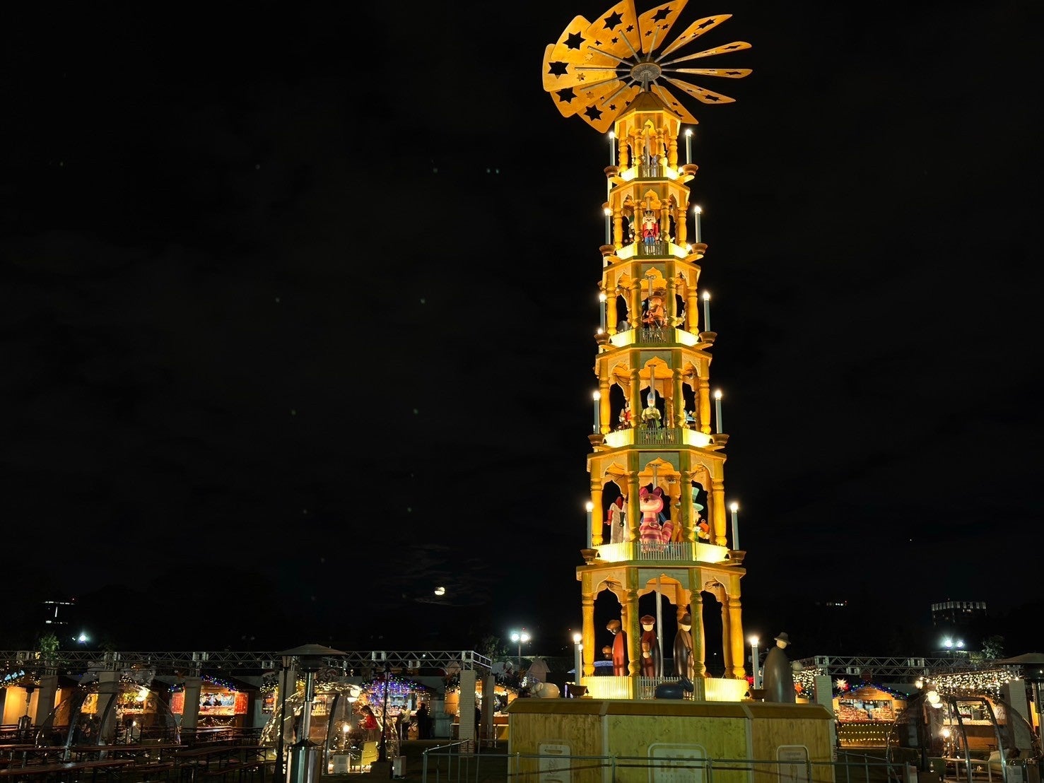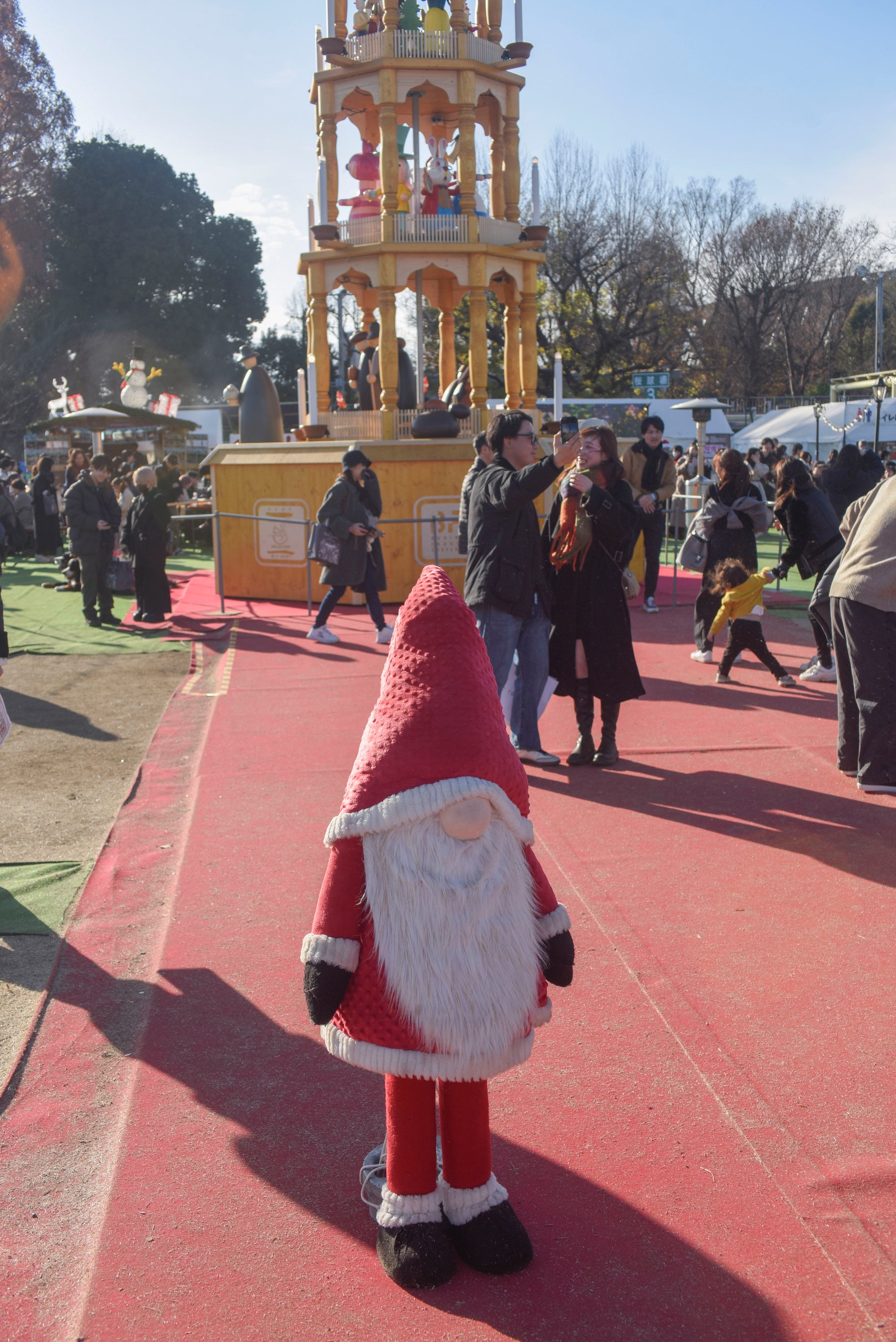 東京クリスマスマーケット会場内のクリスマスピラミッド前
