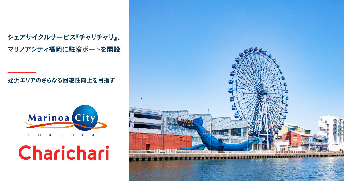 このため両社では、チャリチャリによるマリノアシティ福岡へのご来店時のアクセスがより便利になること、マリノアシティ福岡を中心とした周辺エリアの回遊性向上が期待できるとして協議を進めてきたところ、今般の設置に至りました。