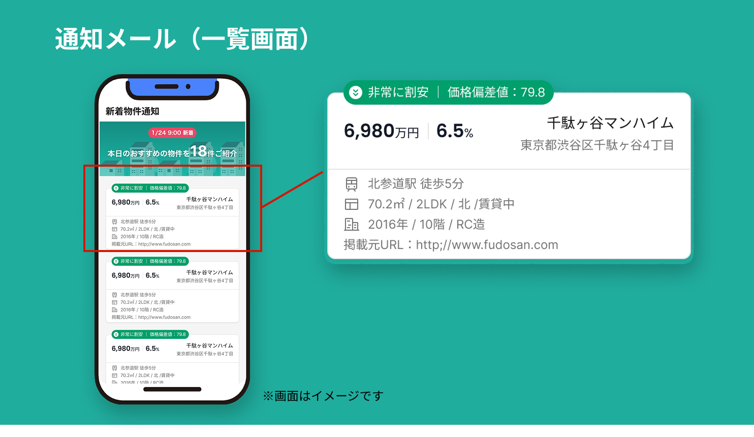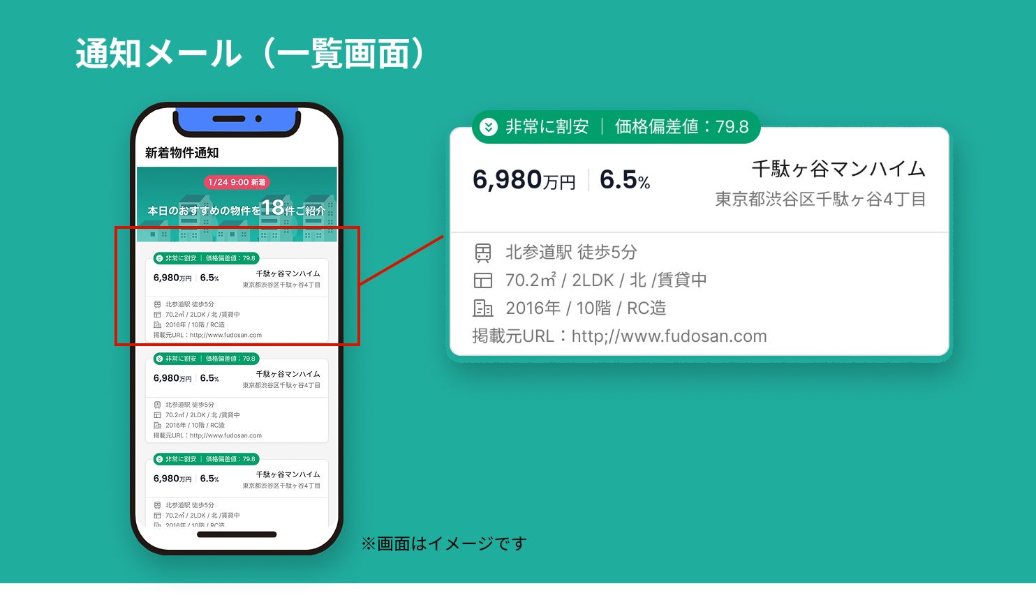 指定条件に合致した新着物件情報を、自動でメール配信。
