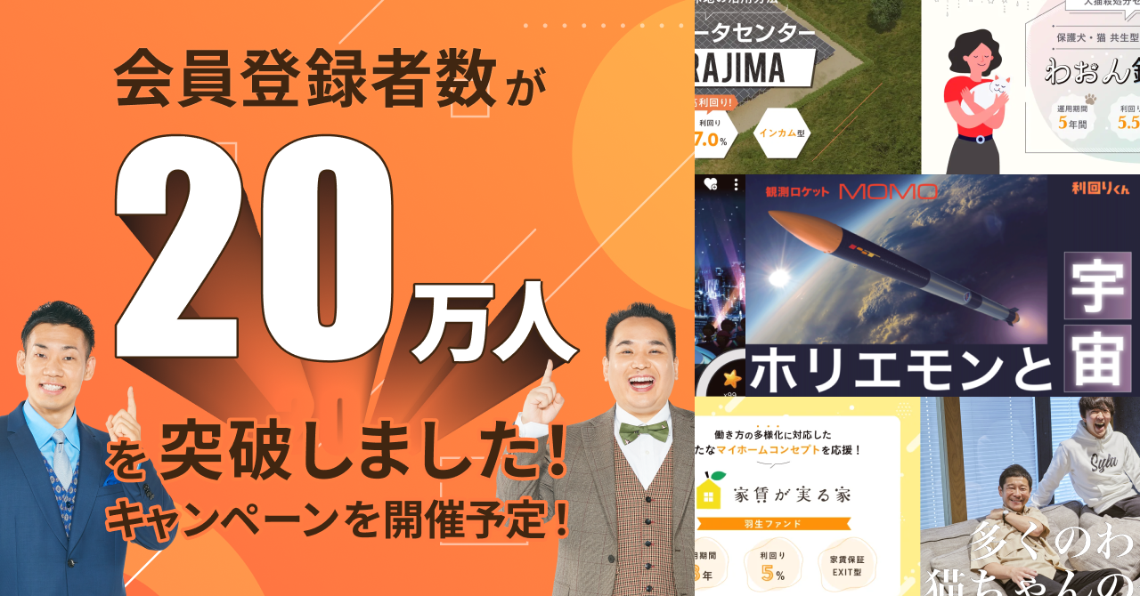 応援型不動産クラファン「利回りくん」の会員登録者数が20万人の大台を突破!世界一の不動産クラウドファンディングを目指します!