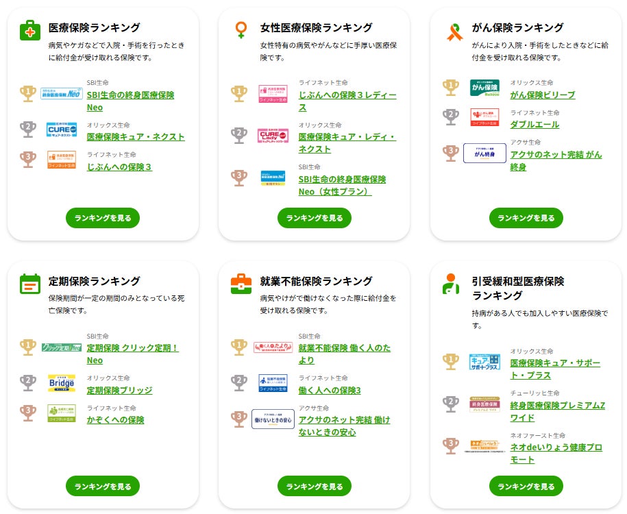 ※ランキングは各保険商品の優劣や推奨を示すものではなく、特定期間の申込件数、資料請求件数、及びアクセス数に基づいて作成したものです。