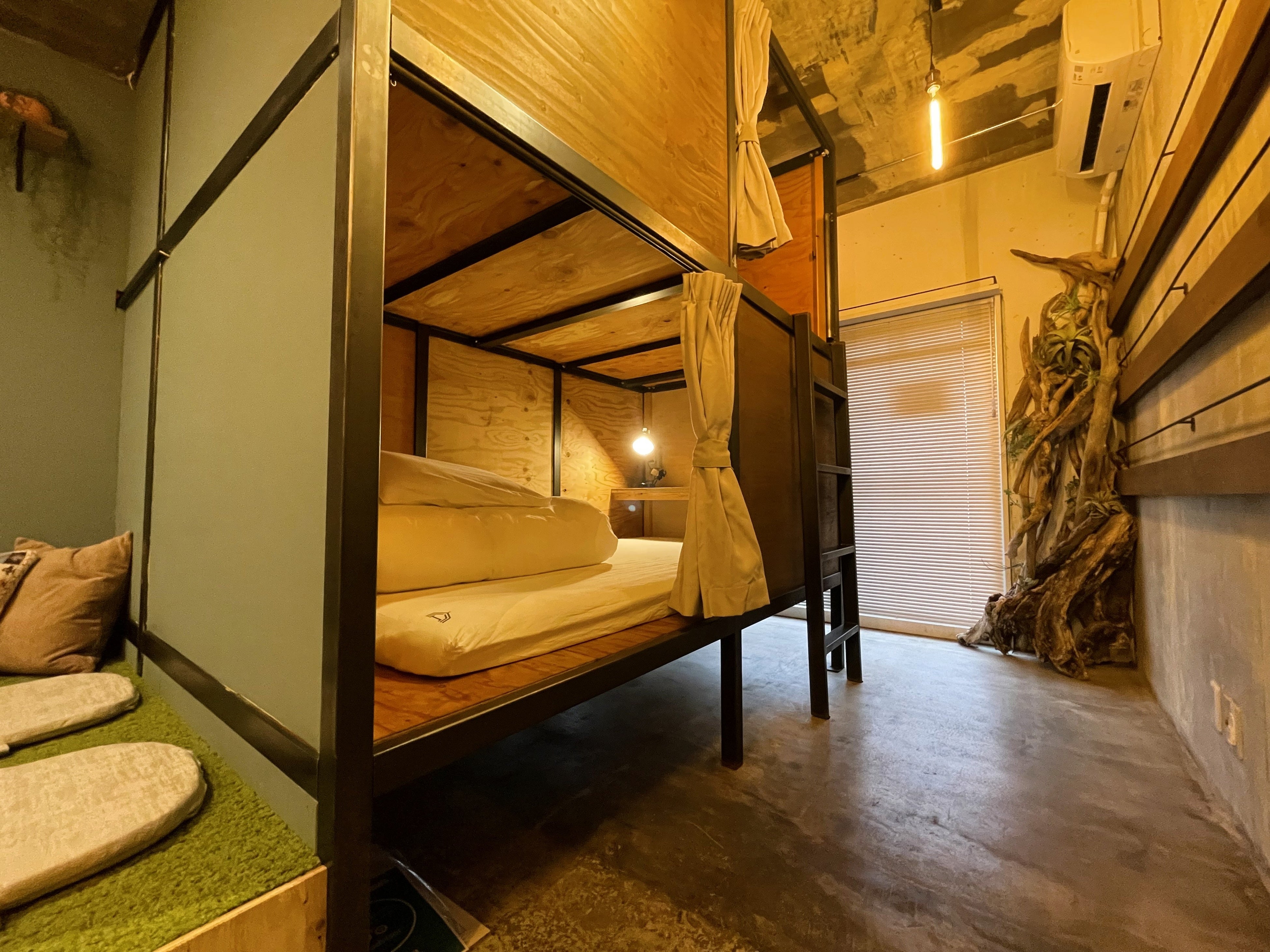 部屋数は62室。客室は全12タイプをご用意(カプセルタイプのドミトリー26ベッド、ダブルベッド個室8室、ツインベッド個室2室、フォースベッドの個室3室、屋内型キャンプルーム3室、屋外グランピングテント1室、CAMPダブル5室、hammockダブル4部屋、hammockツイン1部屋、コンセプトルーム3部屋)。
