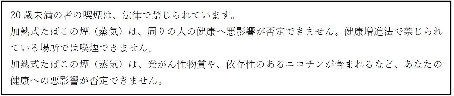 BATグループでは、たばこ製品のマーケティングを適切に実施するために国際的な自主規準を設定しています。そのため消費者に対するたばこ製品に関するすべてのコミュニケーションにおいては、20歳未満の方へのコミュニケーションをお控えいただくとともに、「喫煙と健康に関する注意文言」を表示することを関係各位にお願いしております。加熱式たばこに関しては、記事掲載していただく際には、「健康に関する注意文言」が表示されるようご配慮いただきたく存じます。ご協力の程、何卒よろしくお願い申し上げます。