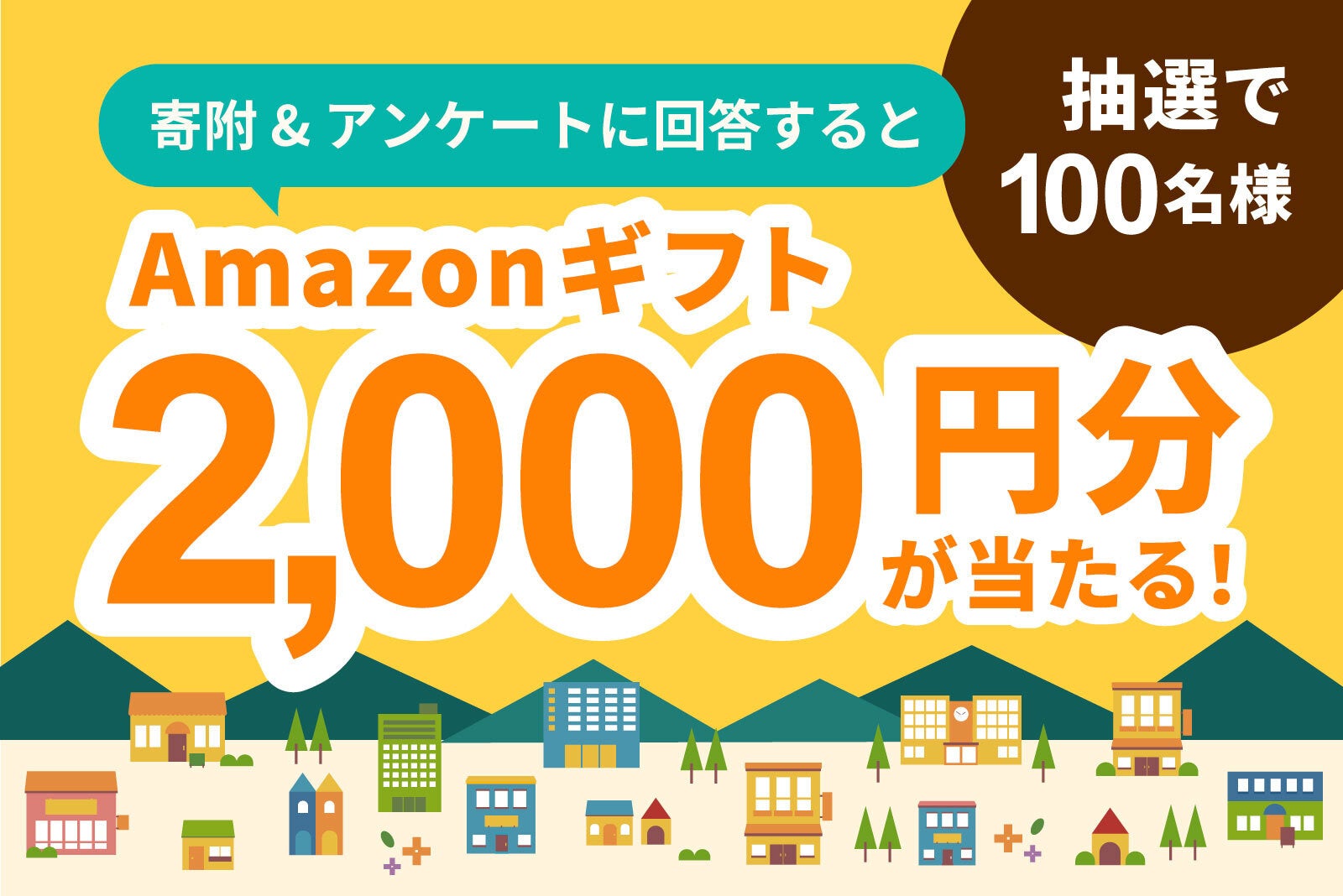 開催期間中、『ふるさとズ』で1万円以上寄附をしてアンケートに回答をしていただいた方の中から抽選で100名様に、Amazonギフト 2,000円分をプレゼントいたします。