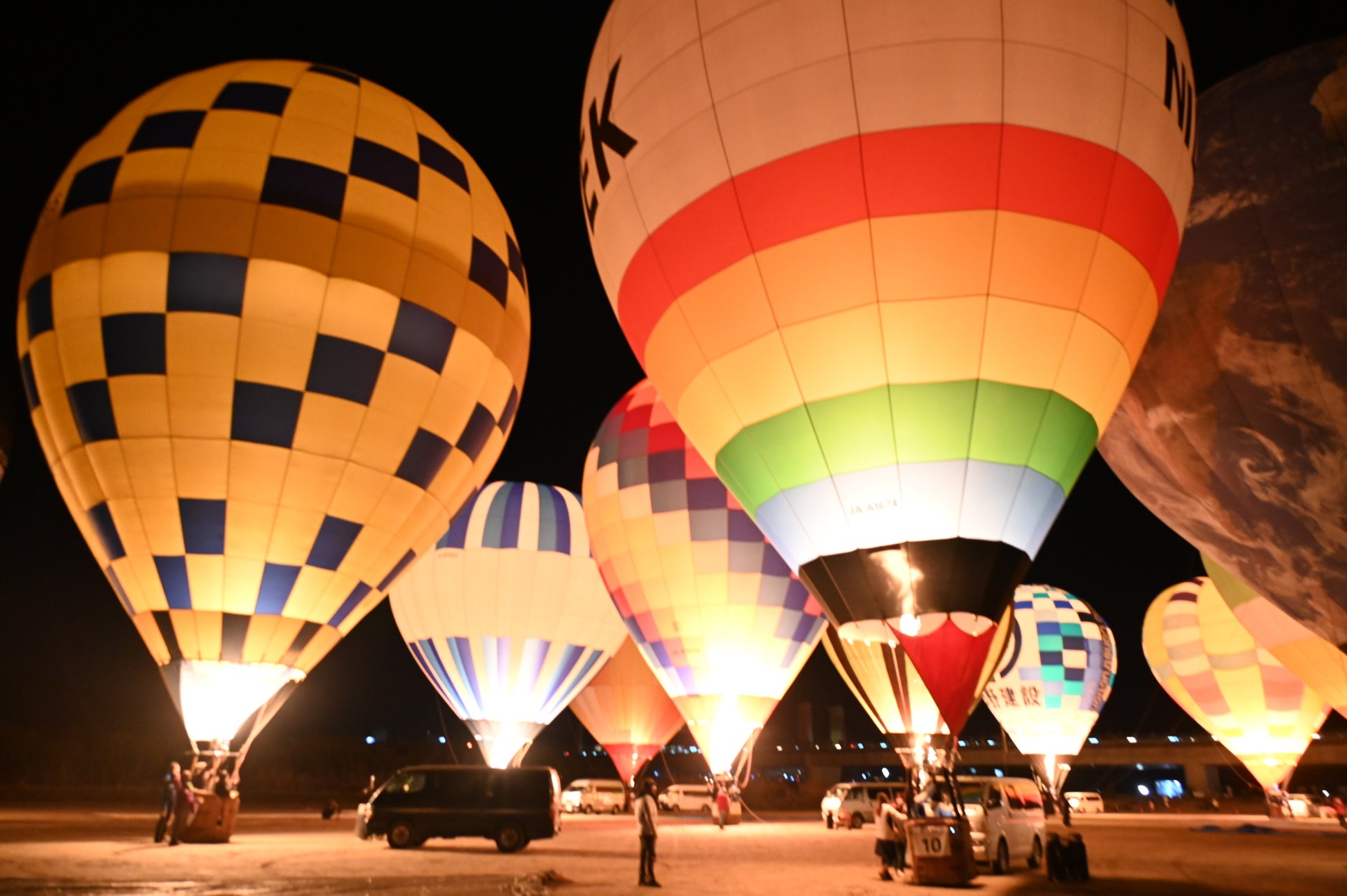 熱気球競技飛行: 熱気球の競技飛行は、色鮮やかなバルーンが空を舞う迫力満点のイベント。パイロットの技術と優雅な飛行が圧巻です。(天候状況により中止となる場合がございます)
